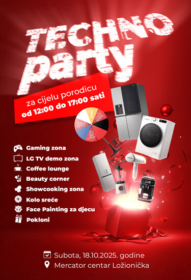 Techno Party za cijelu porodicu! Techno Shop Mercator Centar Ložionička Sarajevo  Subota, 18. Oktobar 2025. – od...